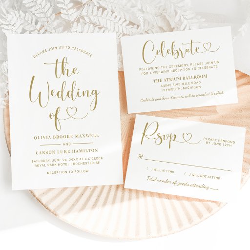 Gold Heart Script Wedding Invitation SuiteCriado por Kat Fusinski