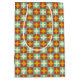 Envolva seus presentes no estilo atômico com este saco de presentes moderno do século médio com um padrão retrorgeométrico de estouro em aqua, mostarda, ferrugem e creme. Um design de anal para os anos 50, este saco colorido e atraente é perfeito para chás de fraldas, aniversários ou comemorações de temas antigos. Emparelhe-o com fita, placas e decoração de festas correspondentes para uma estética de modelo coesa.