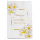 Bonito cor d'água branca frangipani plumeria plumeria flor presente de casamento favorece bolsa de flores de aquarela com moldura dourada. Belas convites de casamento florais são ideais para um casamento de flores botânicas ou tropicais e praias. Personalize com seus próprios detalhes. Outros itens correspondentes também estão disponíveis. © Original floral aquarela pintura e design por Sarah Trett para www.mylittleedenweddings.com