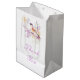Saco de presente médio chá de fraldas bonito com um pássaro adorável e flores roxas e amarelas. Perfeito para primavera ou chá de fraldas de verão. As palavras podem ser alteradas para se adequarem aos seus próprios detalhes ou requisitos