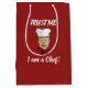 Cabeça de chef com chapéu, corcunda vermelha e texto personalizado.
