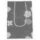 Sacola Para Presentes Média Cinza Moderna e Padrão Floral Branco