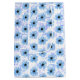 Padrão de margarida azul com bolhas transparentes sobre fundo branco.