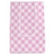 Coelhinho branco e bonito de Páscoa, com gravata rosa em fundo de gingham rosa e branco. O texto é editável.