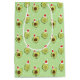Saco de presente de Natal divertido com um padrão de desenhos animados sorridentes vestindo chapéus de Papai Noel em um fundo verde. Bonita Comida Santa Hat Avocado Papel de enrolação de Natal Docinho Comida Arte | ©Melissa Patton — Artista/Ilustrator