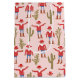Santa Claus in a cowboy hat, cowboy boots and blue jeans surrounded by desert cactus plants for a fun Western Christmas. Original art by Nic Squirrell.