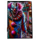 Saco de presente de festa de Halloween. Que os jogos comecem. Palhaço assustador numa cabine de jogos de carnaval, estilo de banda desenhada psicodélica do Halloween.