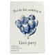 Esta deliciosa bolsa de presente de aniversário é uma maneira pensativa de se encontrar com obrigados por fazer parte de uma celebração especial. A bolsa apresenta balões elegantes na cor d'água azul de Delft, trazendo um toque artístico suave inspirado pelo clássico design holandês. Em letras graciosas, a mensagem diz: Obrigados por vir ao aniversário de [Nome]" — uma nota calorosa e pessoal de apreço. Na parte inferior da bolsa, os detalhes da celebração são sutilmente impressos: Nome, Localização, Data — juntando a memória do dia em um layout refinado e na moda. Perfeito para segurar favoritos para festas ou pequenos presentes, esta bolsa adiciona um toque pessoal e elegante ao seu evento de aniversário, misturando charme tradicional com talento festivo.