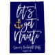 Presenteie os convidados da sua despedida de solteira com tema náutico usando este design moderno branco personalizado e engraçado de "Vamos Ficar Nauti" com caligrafia moderna e um padrão de âncora dourada nas laterais. Personalize com o seu nome e data da festa selecionando "personalizar este modelo". Para perguntas ou pedidos relativos a este design, por favor entre em contato conosco via chat; teremos prazer em ajudar!