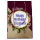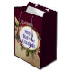 Sacola Para Presentes Média Dourado Marble Pattern e Florais Borgonha Aniversá