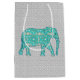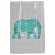 Sacola Para Presentes Média Elefante Flor Mandala, Turquesa, Cinzas e Branco