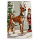 Celebrate the unique elegance of the Basenji this holiday season. This clean, modern illustration features a graceful Basenji, adorned with a tiny jingle bell, positioned next to a classic nutcracker figure. Perfect for Basenji owners and those who appreciate sophisticated, non-traditional pet art. Ideal for minimalist Christmas cards, sleek home decor, and gifts that highlight the refined features and quiet charm of this barkless breed.