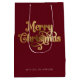 Sacola Para Presentes Média Elegante Chic Script Red Dourado Feliz Natal