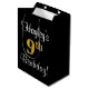 Este na moda, sofisticado e elegante design de sacola de presente temático de aniversário apresenta o número ordinal "9º" com um padrão de gradiente tipo ouro imitação/falsa, juntamente com uma mensagem de saudação de aniversário e um nome de destinatário personalizado em uma fonte estilo script. O fundo é preto colorido. Um saco de presentes como este pode ser uma maneira divertida de embrulhar um presente de aniversário ou de ser dado a alguém que comemora seu nono aniversário. [~Z0000513]
