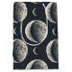 Elegante bolsa de presente com fase da lua e padrão celestial apresentando luas crescentes, estrelas e detalhes lunares radiantes em um fundo escuro. Ideal para amantes de astrologia, entusiastas da lua, buscadores espirituais, observadores de estrelas e fãs de estilo celestial místico.