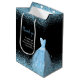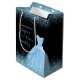 Um lindo vestido elegante de aquarela azul claro, com tema elegante, vestido de fundo preto com brilho sujo no topo e no fundo do saco de favores Todo o texto pode ser personalizado para se adequar às suas próprias necessidades.