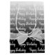Texto de aniversário feliz e arco branco em fundo de gradiente preto a branco. O texto é editável ou pode ser excluído.