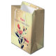 Sacola Para Presentes Média Feliz Aniversário, Nome, Flores em Dourado