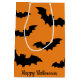 Sacola Para Presentes Média Feliz impressão de morcegos preto e laranja
