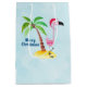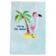 Sacola Para Presentes Média Feliz Natal Flamingo Rosa em Santa Hat
