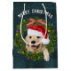 Sacola Para Presentes Média Feliz Ouro de Natal - Retriever na xadrez