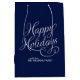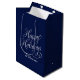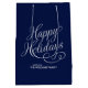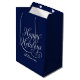 A tipografia do roteiro azul personalizou a bolsa de presente de Natal.