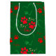Festive DOG PAW PRINTS and LOVE HEARTS Christmas Gift Bag in GREEN, designed to giftwrap your special pet present for your favorite fur baby. The design shows paw prints with hearts in Christmas color palette with festive elements. This paws and hearts Gift Bag would be ideal as a finishing touch to your Christmas gift for a dog mom and dog dad or other animal lover. Also available in white.