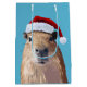 Sacola Para Presentes Média Festivo Capybara em Santa Hat
