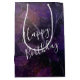 Sacola Para Presentes Média Folha Roxa De Aniversário A Preto