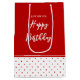 Sacola Para Presentes Média Fundo Branco Vermelho Bolinhas Chic