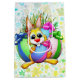 Funny and Cute Easter Bunny Cartoon Character biting a decorated Egg. Original Digital Art Copyright BluedarkArt.