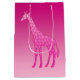 Sacola Para Presentes Média Girafa Geométrica Moderna, Fuchsia e Rosas claro