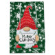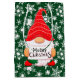 Gnome fofo com chapéu de Papai Noel e placa de Feliz Natal
