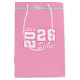 This gift bag is for the Grad in your life, shown in pink with a diamond sparkle accent and a senior class of print.