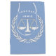 Saco de presente de congratulações para advogado criativo para graduado em direito ou sócio de escritório de advocacia. O design apresenta balanças da justiça criativas. Edite o texto para adicionar nome e ano ou personalizar de outra forma.