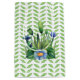 Este design apresenta uma mistura de formas gráficas e flores coloridas. O fundo é um padrão de folhas verdes. No centro da design há um conjunto de flores azuis e laranja. Este design genérico é perfeito para Páscoas, Dias de as mães, aniversários, chás de panela e tantas outras ocasiões mais festivas.