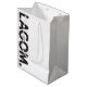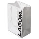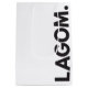 Disponível em muitos produtos, este saco-presente exibe a palavra LAGOM. Lagom (pronunciada [lɑ̀ ː om]) é uma palavra sueca, o que significa "apenas o montante certo". O Lagom pode ser aplicado a todas as situações, desde a comida e a bebida até às emissões de direitos de autor e de dióxido de carbono.