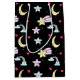 Um padrão legal com estrelas felizes, lua, nuvens e arco-íris num fundo negro. O fundo preto dá-lhe um efeito noturno.