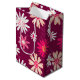 Magenta, rosa e design de margarida branca em fundo de marrom.