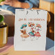 Apresente seus presentes com o espírito vibrante e o toque pessoal de Día de Muertos usando esta bolsa de presente atraente, agora com texto personalizável! Acima da design deliciosa de três cartazes dançarinos, você pode adicionar um nome, uma mensagem curta, ou qualquer texto para tornar sua dádiva ainda mais especial. A trabalho de arte abaixo mostra a celebração alegre, com cada Catarina adornada em chapéus florais coloridos e vestidos fluidos em tons de pêssego, chato e vermelho. Um arranja uma guitarra, outro um pequeno instrumento de cordas, enquanto o terceiro se move com energia festiva, criando uma encantadora cena de prazer musical. Este saco de presentes é mais do que uma forma de carregar de presente; é uma expressão personalizada da vossa reflexão, mostrando uma rica tradição cultural com talento artístico. As cores brilhantes e os detalhes intrincados dos Catrinas dançantes, combinados com sua mensagem personalizada, farão com que qualquer presente se sinta especial e memorável, perfeito para qualquer um que aprecie a cultura mexicana, a arte única, ou a beleza do Dia dos Mortos. Torne a sua dádiva verdadeiramente única com esta mala personalizável e comemorativa!