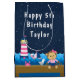 Essa bolsa de presente fofa e divertida pode ser personalizada com um nome ou título, como filha, neta, sobrinha, amiga etc. Apresenta um macaco-marinheiro náutico num pavimento de madeira com uma gaivota e um caranguejo. Ao fundo há um farol rosa e branco, um pássaro giro em um veleiro, ondas oceânicas e um marinho azul estrelado céu noturno. O texto combina fontes em negrito e sem serifa para uma aparência na moda e moderna.