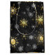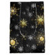 Sacola Para Presentes Média Natal Dourado dos Flocos de Neve Pretos