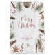 Sacos de presente de Natal neutros rústicos com uma borda de Natal em aquarela com pinhas, ornamentos, bengala de açúcar e bagas de Natal.