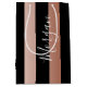 Sacola Para Presentes Média Nome DIY Branco, Listras Verticais Rosa Dourado e