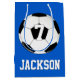Nome Personalizado do Jogador de Futebol & Jersey Número de Esportes Mídia Gift Bag: Um doce saco de presentes personalizável para jogadores de futebol e fãs, com caixas de texto personalizadas onde você pode digitar o número e o nome da camisa do jogador de futebol (ou nome da equipe). Você também pode clicar no botão [Personalizar] para alterar a cor do plano de fundo (atualmente definida em azul). Estes adicionam um toque pessoal especial ao aniversário de jogadores de futebol ou presentes de Natal, e são perfeitos para dar presentes em festas de futebol, banquetes e outras celebrações!