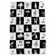 Um grande presente para todo o músico ou melómano, características deste design legal uma verificação preto e branco moderna e à moda esquadra o teste padrão com as várias notas musicais e os instrumentos musicais em cores alternas. Inclui pianos, trombetas, cilindros e saxofones com notas da música e clefs de triplo.