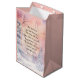 Saco de presentes médio com uma escritura inspiradora de aspas retrata uma bela cena de vencedor de aquarela com simples neve coberta de pinheiros e um céu cor-de-rosa. Apresenta Números de Versos Bíblias 6:24-26, "O LORD abençoa-te e mantém-te; O LORD faz-lhe brilhar e ser gracioso para ti; O Senhor vira-lhe o rosto e dá-te paz."
