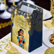 Festa de aniversario de meninas de Bollywood imprimida sacos de presente de modelo, uma linda dança indiana de dança para as festas de aniversário temáticas indianas, azul e ouro, bolsas de presente