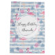 Saco de presentes com um padrão com uma vibração de verão divertida. flamingos e abacaxis cor-de-rosa, colocados sobre um padrão listrado azul claro com folhas e corações ao redor.