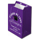 Sacos de presentes de festa de reunião de classe personalizada em roxo e branco para um segundo grau, faculdade ou universidade. Personalize com seu nome de escola e sua classe de graduação sob a elegante caligrafia para presentes personalizados de celebração de alunos excelentes.